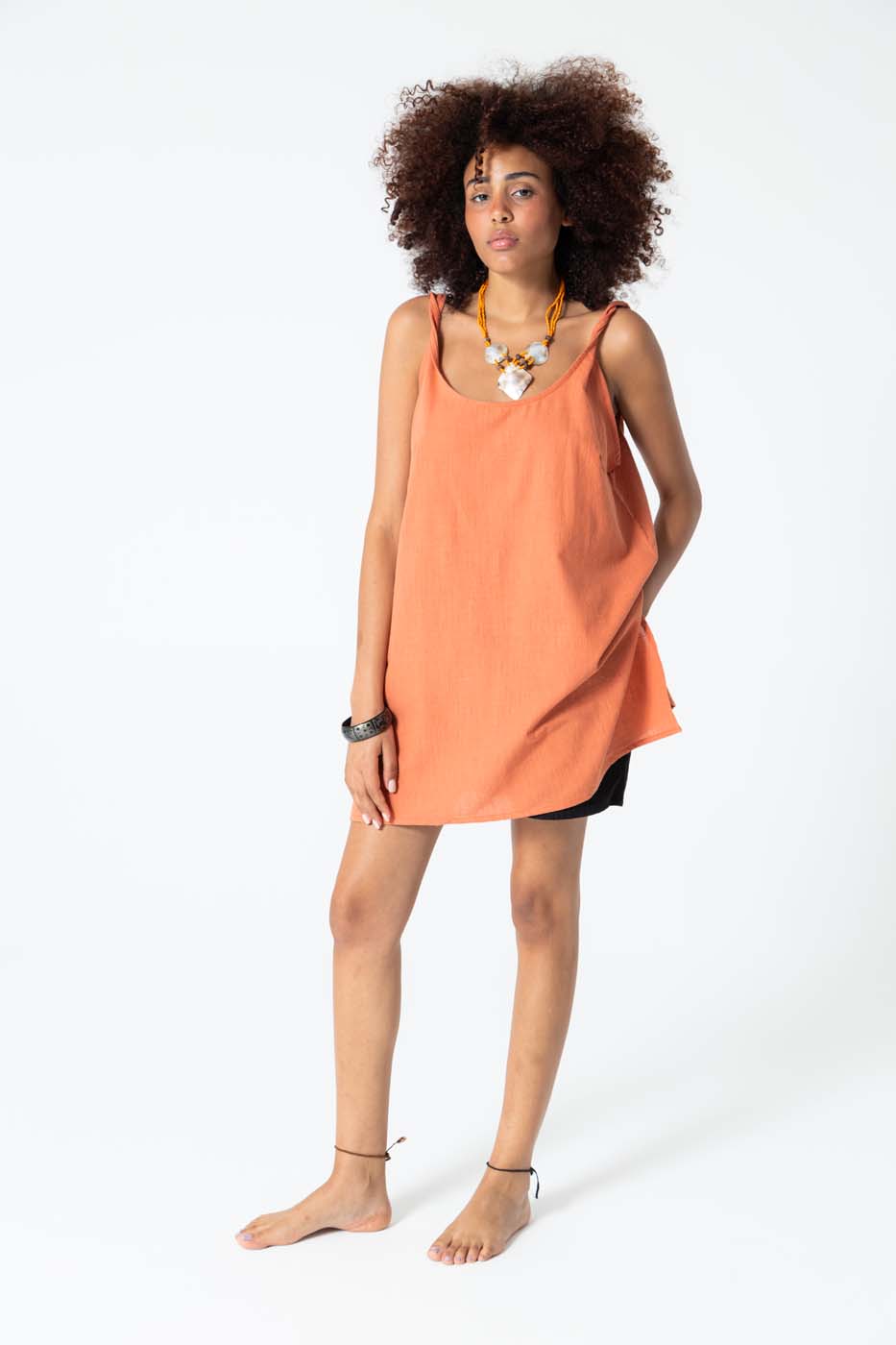 Rubystars - Kadın Giyim - Kadın Bluz - Askılı Tunik Bluz Açık Turuncu