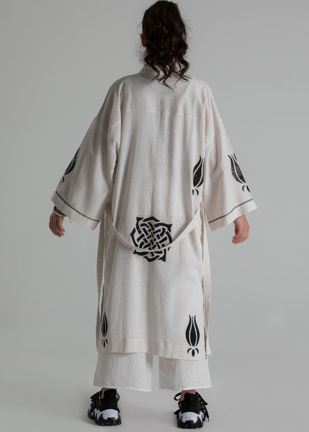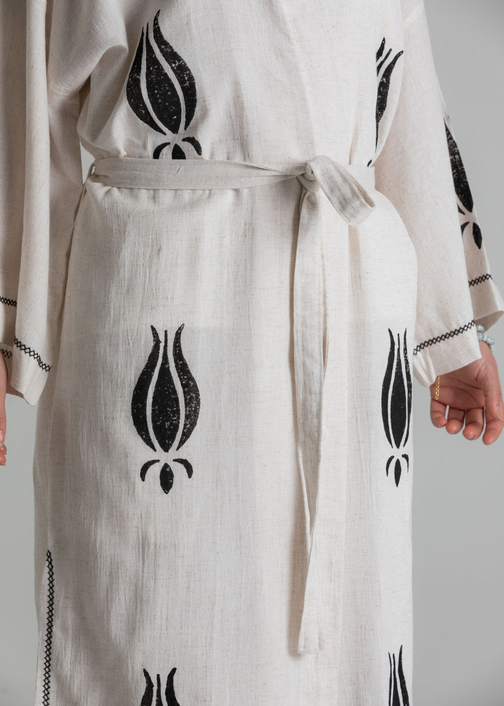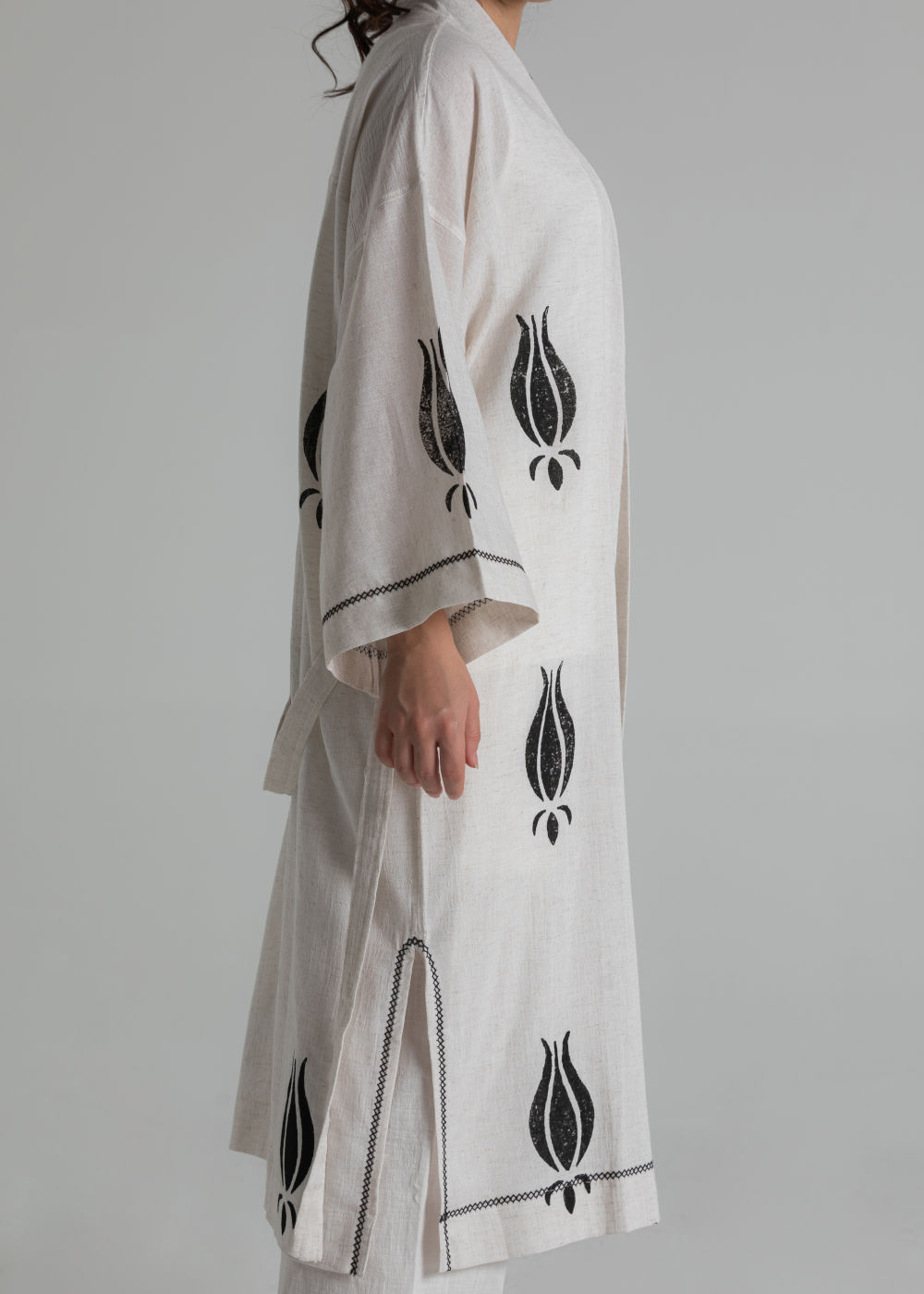 MALZEME VE BAKIM PAMUK TEKNİK EL İŞİ TAŞ BASKI MATERYAL - PAMUK Taş baskı kimonalar, tamamen el baskısıdır. Pamuklu kumaşlar üzerinde yapılan bu teknikle benzersiz, eşsiz ve bir o kadar da otantik bir görünüm sağlamaya etkendir. Geçmişten gelen kavramları, ileri moda koleksiyon altında modern bir dokunuşla birleştirerek yeni bir tarz oluşturmamıza ve giyiminizde göz alıcı etkiler yaratacaktır. Her alanda kurtarıcı, kombinlerde yardımcı. İÇERİK %100 PAMUK ASTAR DURUMU ASTARSIZ GERİ DÖNÜŞTÜRÜLEBİLİR BAKIM Giysilerinizi talimatlara uyarak yıkadığınız müddetçe, kıyafetlerinizin daha uzun ömürlü olmasını sağlayabilirsiniz. Doğaya destek ol, geleceğine sahip çık.Maksimum 30°C ' de yıkayınız.
