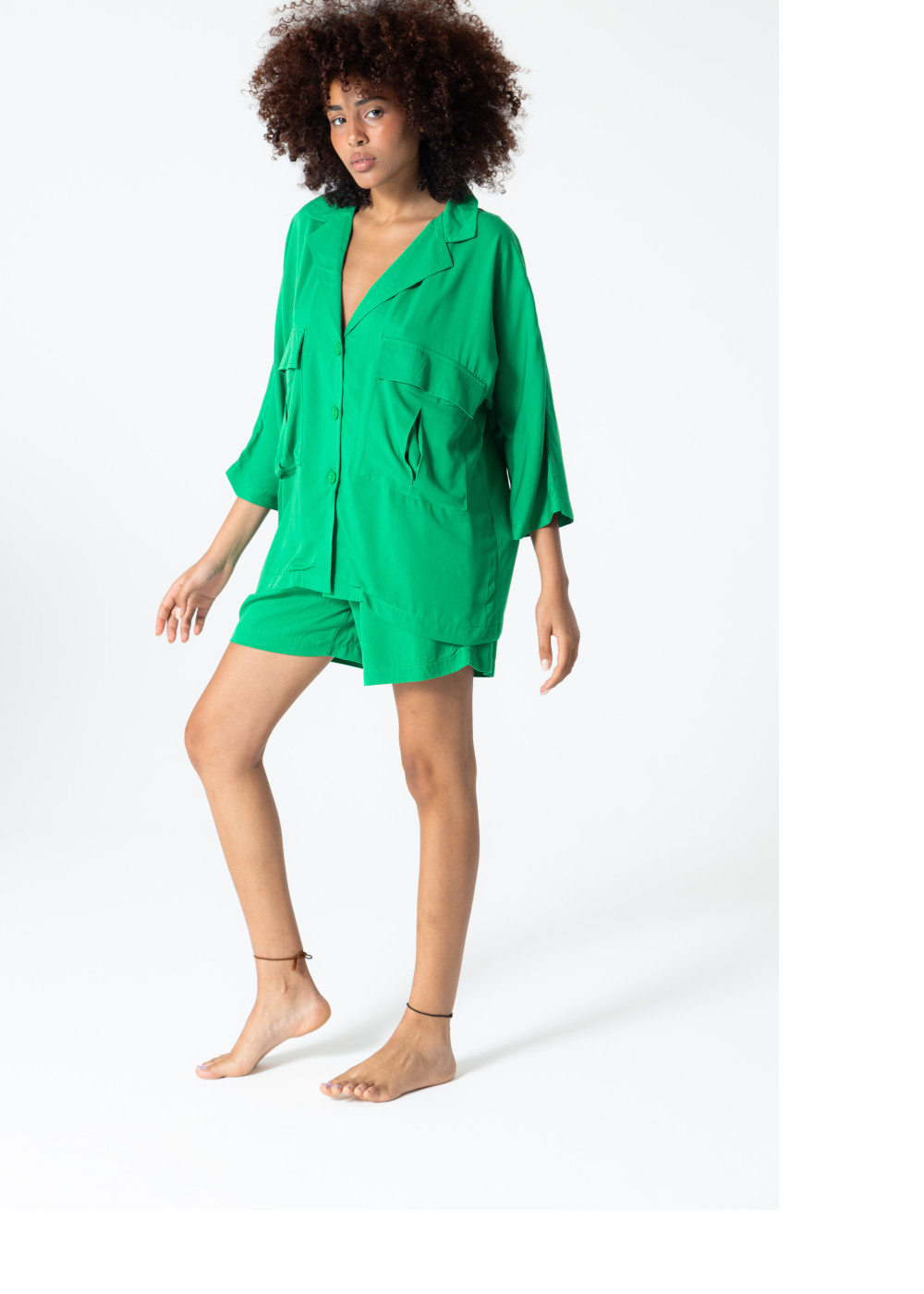 Rubystars - Kadın Giyim - Kadın Gömlek - Salaş Gömlek Beneton Yeşili