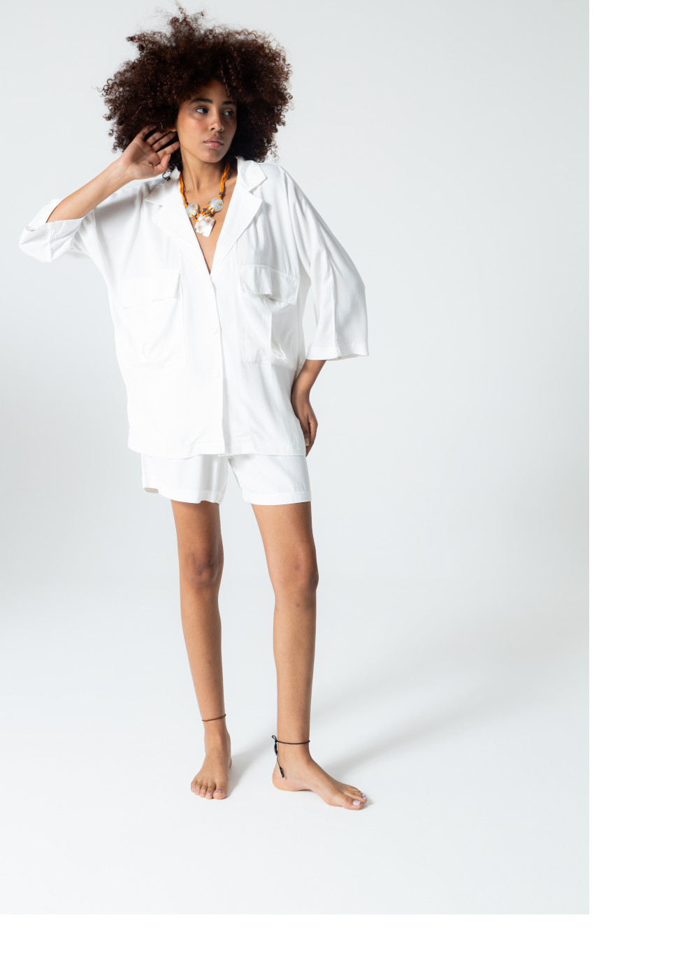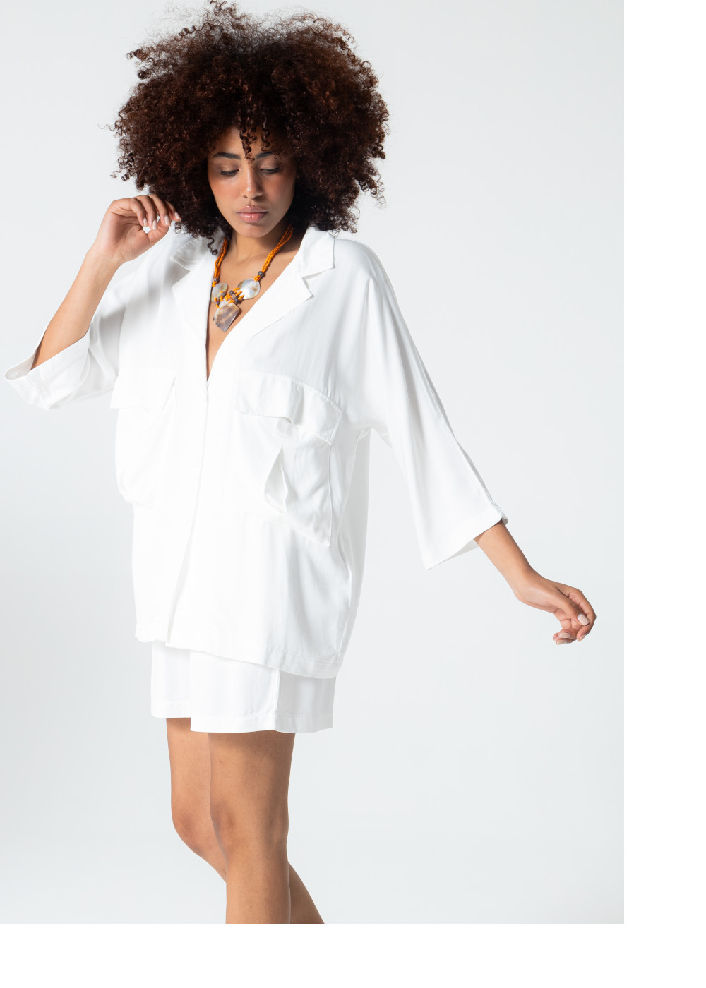 Rubystars - Kadın Giyim - Kadın Gömlek - Salaş Gömlek Beyaz