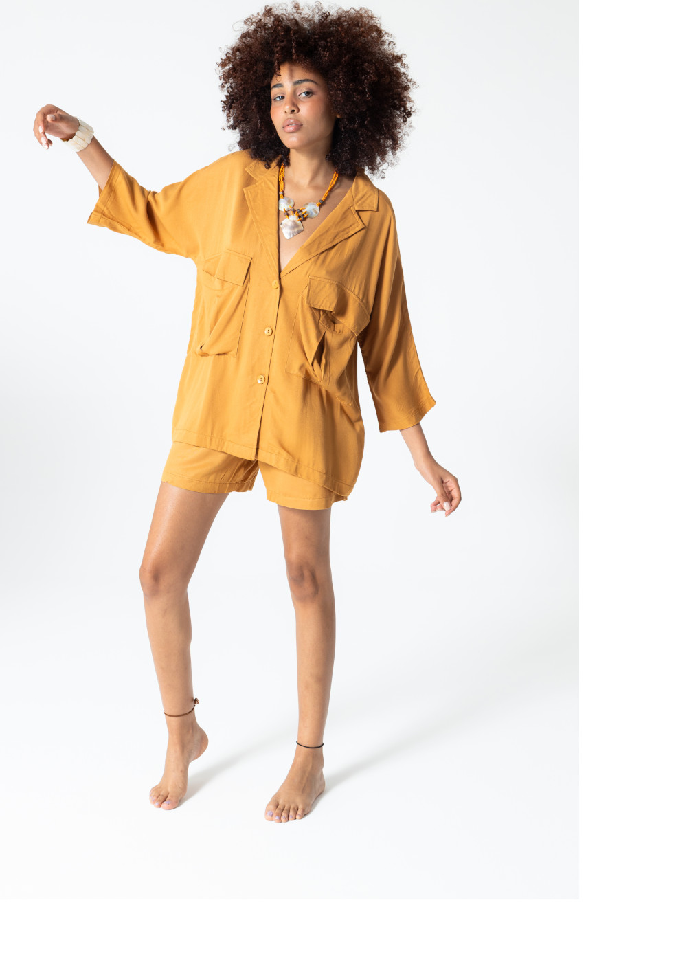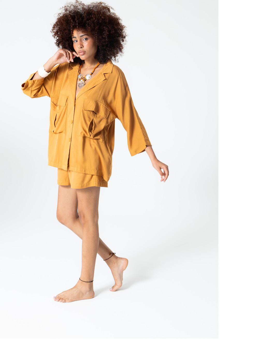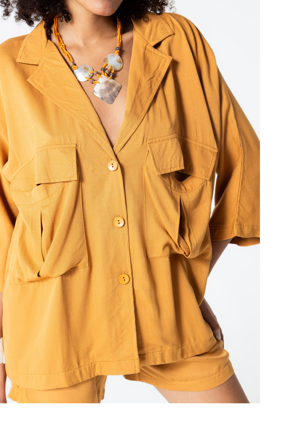 Rubystars - Kadın Giyim - Kadın Gömlek - Salaş Gömlek Koyu Sarı
