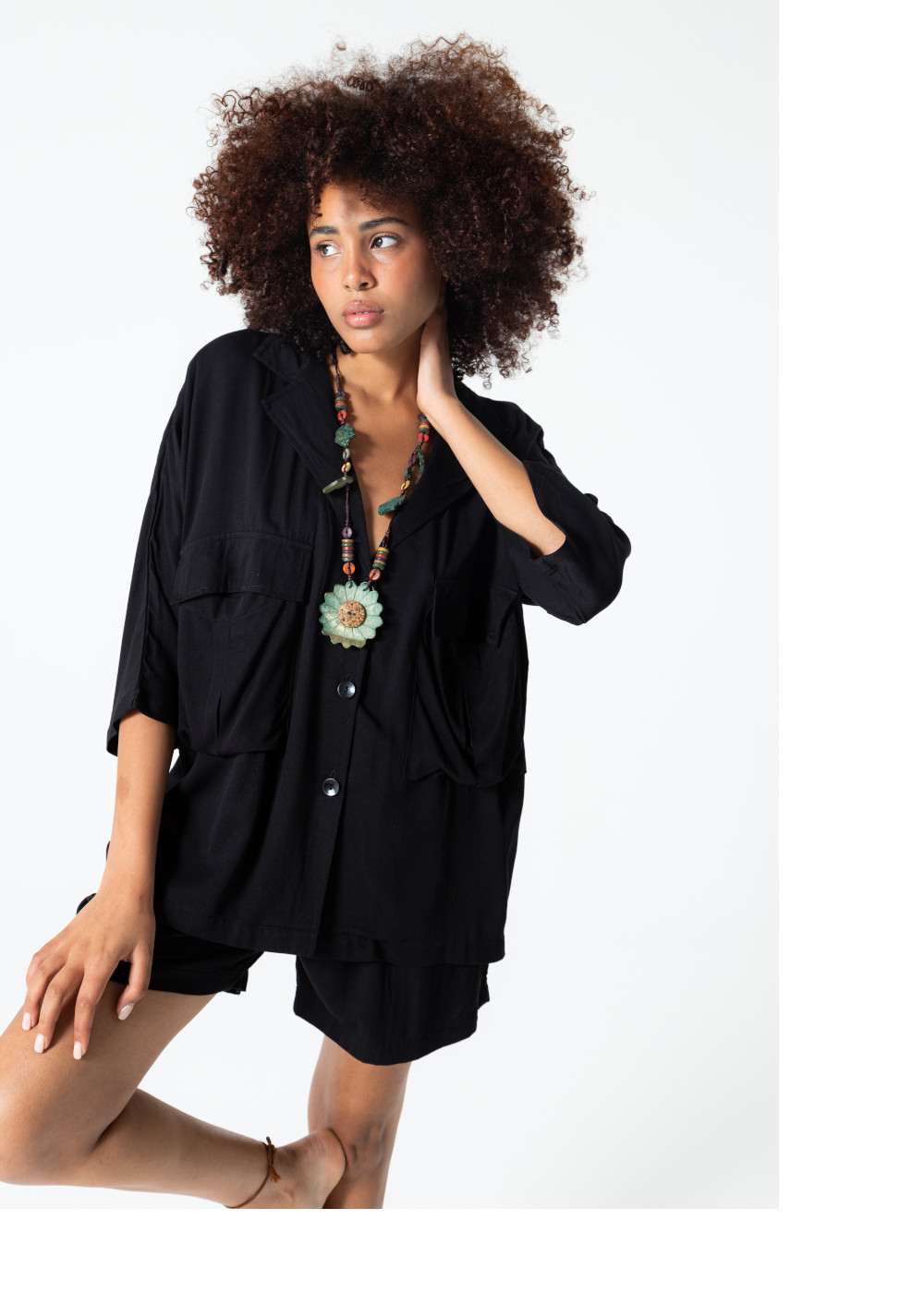 Rubystars - Kadın Giyim - Salaş Gömlek Siyah